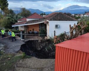 Αποτέλεσμα να ανοίξει μεγάλη τρύπα που όλο μεγαλώνει μιας και τα νερά τρέχουν εσωτερικά.